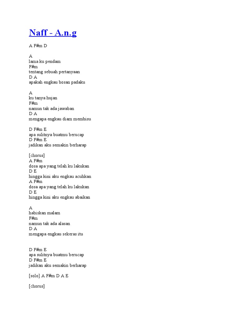 Kunci Gitar Lagu Naff - Dengan chord gitar dasar yang sangat mudah di pahami dan lirik lagu yaang mudah dimengerti. Kunci Gitar Lagu Naff : C g am dm c g.