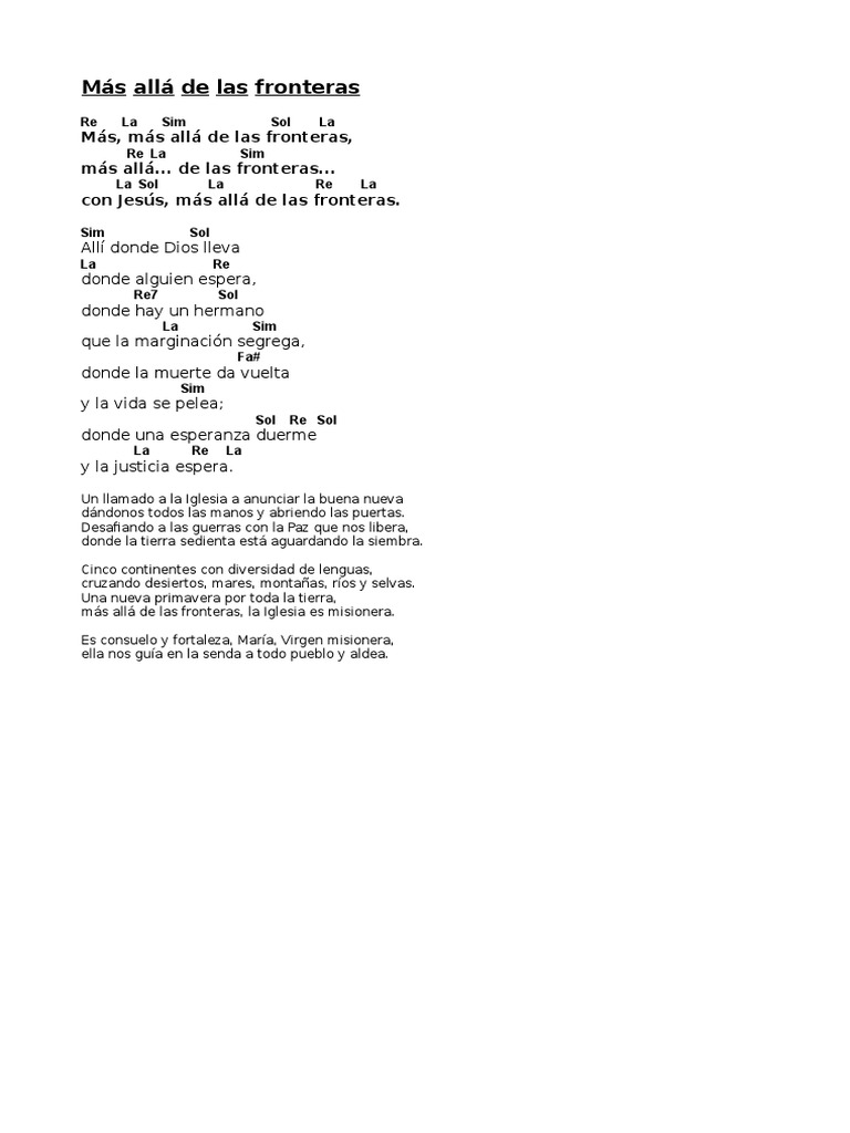 Mas Alla Del Sol Letra Cancion Catolica - Acordes, letra y tablatura de la cancion mas alla del sol de musica catolica. Mas Alla Del Sol Letra Cancion Catolica - Asi por el mundo, yo voy caminando pruebas.